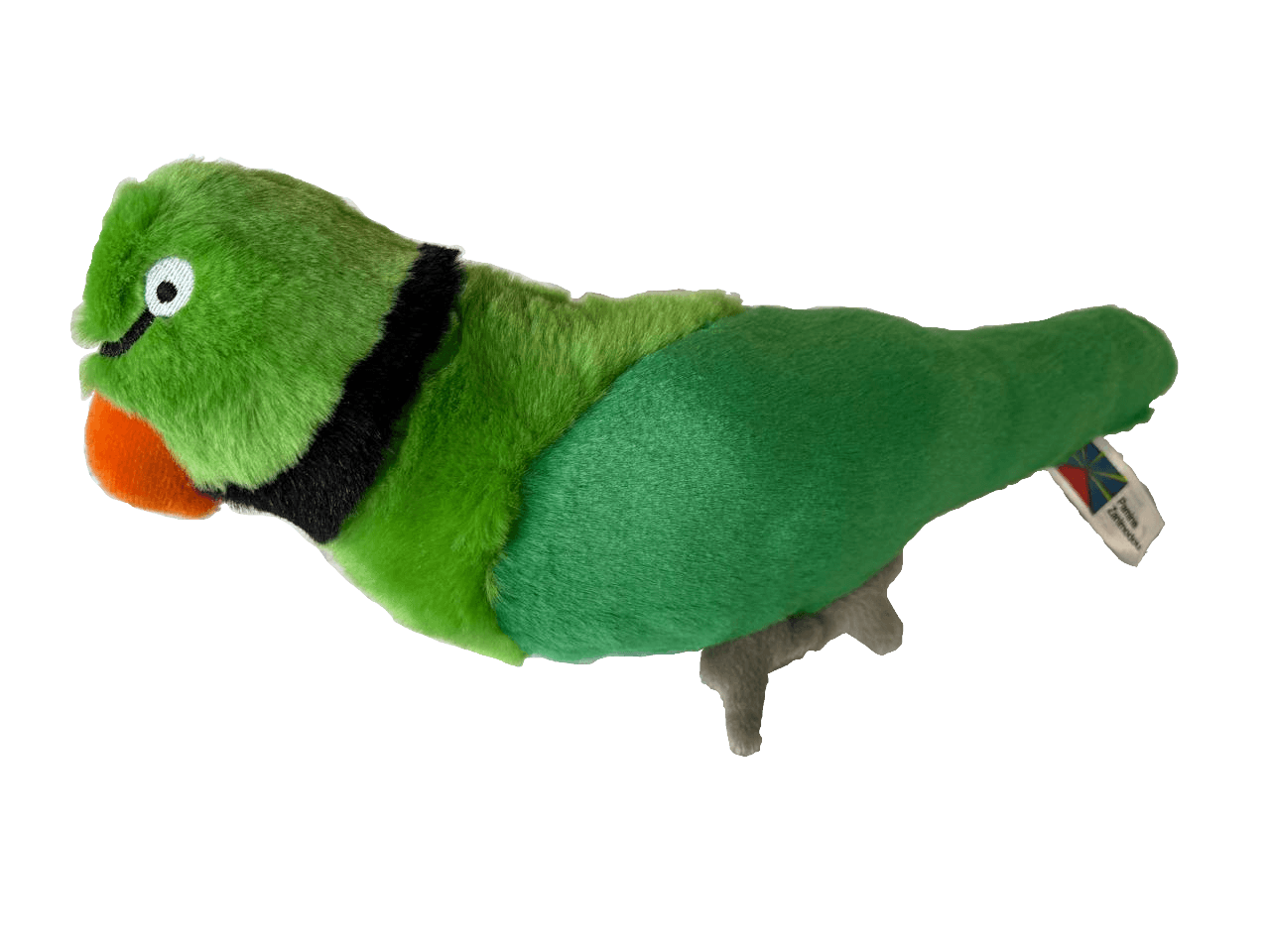 Voici la nouvelle peluche de Pamine: la Perruche verte des Mascareignes disparue de notre île depuis 1750 environ.Elle est très douce avec son plumage vert éclatant et clair et son gros bec orange. Elle est rembourrée avec de la "laine Péi".Elle mesure 30cm sur 8cm.